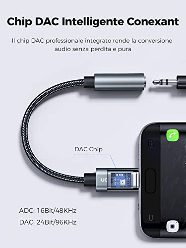 【Qualità Sonora Straordinaria】L'adattatore per cuffie USB C utilizza un chipset DAC di alta qualità per ridurre le interferenze causate dal flusso di corrente e migliorare il rapporto segnale/rumore. Supporta fino a 96 kHz, uscita audio a 24 bit, in grado di fornire il suono perfetto senza distorsioni o interruzioni della qualità del suono.