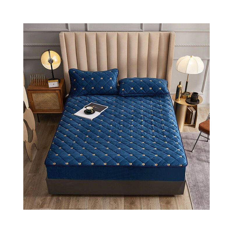 Addensare velluto lenzuolo con angoli per letto trapuntato copriletto sul letto caldo coprimaterasso biancheria da letto formato usa/ue copriletto 160x200cm,Blu,150x200x30cm