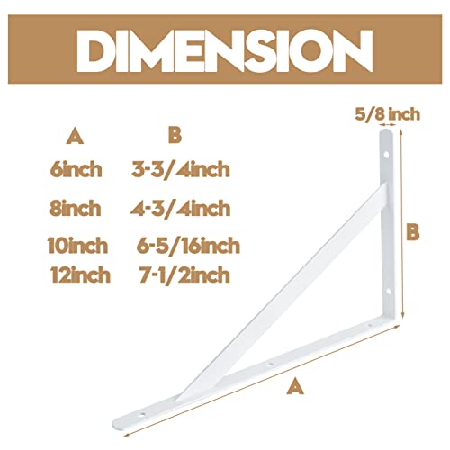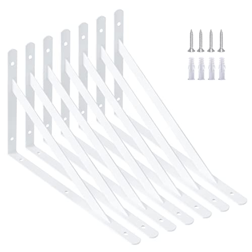 AddGrace Supporti per mensole, 6 pezzi, fissaggio a parete, viti, incl. supporti triangolari pesanti, supporti decorativi per scaffali (bianco) 25,4 cm