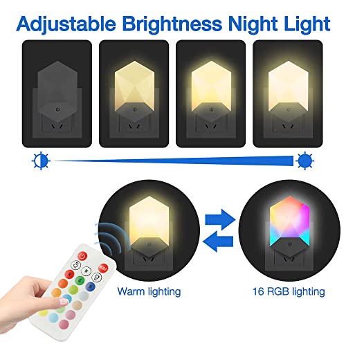 RGB Opzioni multicolore: la luce notturna offre una varietà di opzioni di colore RGB con 16 effetti statici, 4 effetti dinamici e diversi colori tra cui scegliere. Puoi regolare la luminosità in modo continuo o mantenere la luce bianca calda per creare unatmosfera calda e dolce per la tua famiglia al buio.
