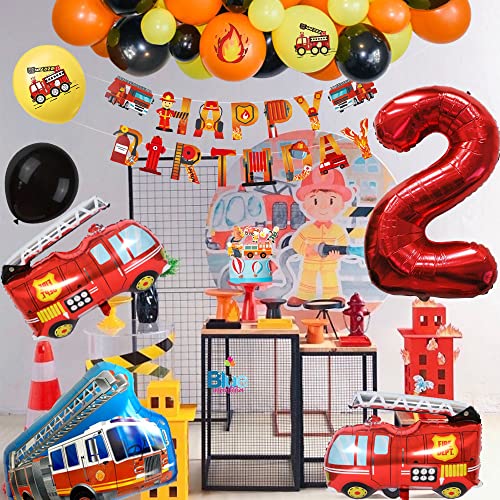 Addobbi Compleanno Bambino 2 anni Camion dei Pompieri, Palloncini Compleanno 2 anni Palloncino Compleanno Vigile Del Fuoco, Decorazioni Compleanno Bambino per Bambini Ragazzo 2 anno