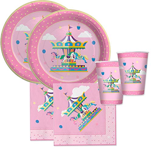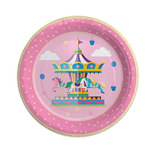 Ipt Kit n 2 Addobbi Festa Carousel Party Rosa Accessori tavola giostra giostrina Rosa con Cavalli allestimento Party Compleanno Baby Shower Tema Luna Park