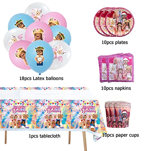Decorazione di compleanno Roblox. La confezione contiene 18 palloncini in lattice roblox, 1 tovaglia roblox, 10 piatti roblox, 10 tazze roblox, 10 tovaglioli roblox.