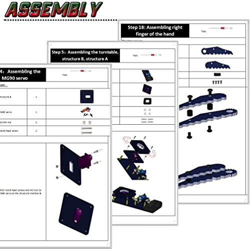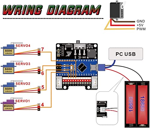 【Kit braccio robot】: progettato per gli appassionati di robot (oltre 12 anni). Puoi imparare la programmazione, la robotica, l'elettronica e altre conoscenze correlate assemblandole e programmandole Nota: 2 batterie 18650 non sono incluse. deve essere acquistato separatamente