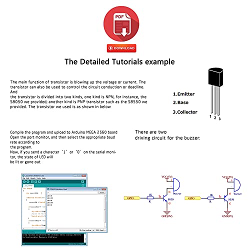 Viene fornito un dettagliato manuale utente/guida (PDF) con 33 lezioni, è esay per voi a imparare e programmazione Arduino. Solo dopo l' acquisto, inviare un' e-mail a noi con titolo "richiedono file per Ultimate 2560 Starter Kit, allora ti indicherà come per accedere alla guida e codice C, E così via.