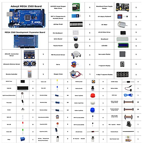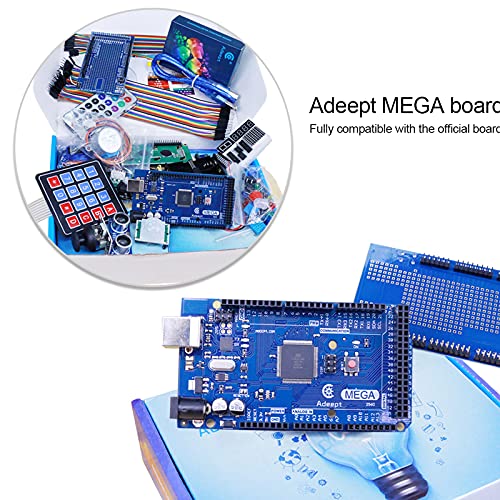 Adeept Ultimate Starter Kit per Arduino MEGA2560 LCD1602, Motore Passo-Passo, ADXL345, Kit di apprendimento con PDF Guidebook