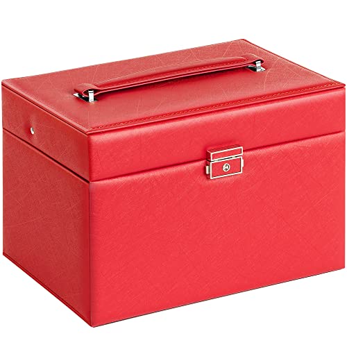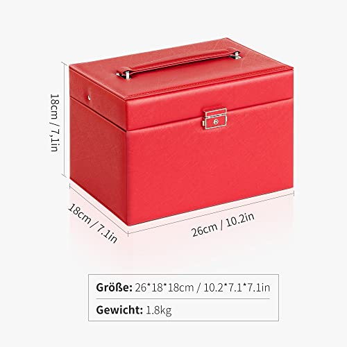 AdelDream Portagioie con 2 Cassetti Fodera in Velluto Portagioie Rosso-06-2 26x18x18 cm