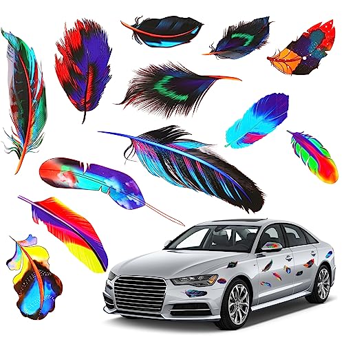 Adesivi Multifunzione - Gli adesivi universali in vinile sono ideali per porte, cofani, fiancate del corpo, bagagliai, finestrini laterali o posteriori della maggior parte delle auto da corsa, auto normali, jeep, camion, SUV e camper. Oltre a decorare le auto, puoi anche decorare pareti, finestre, laptop, è un ornamento multiuso. Totale di 12 piume da abbinare a piacimento. Si prega di confermare la taglia prima dell'acquisto