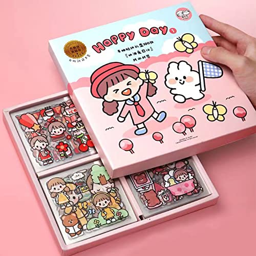 【Dimensioni】La confezione regalo misura circa 18,6 cm * 18,6 cm * 2,1 cm / 7,32 * 7,32 * 0,82 pollici, ogni adesivo misura circa 8 * 8 cm / 3,14 * 3,14 pollici. Il pacchetto include 100 simpatici adesivi, che possono soddisfare le tue esigenze decorative per diverse occasioni
