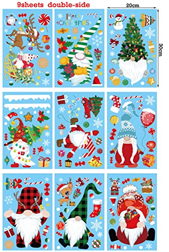 Adesivi per finestre di Natale, 9 fogli, decorazioni natalizie per finestre, adesivi per finestre, adesivi per Natale, gnomo nano, Babbo Natale, fiocco di neve, in vetro per feste di Natale