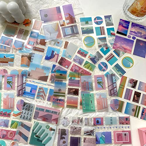 Set di 400 adesivi in PET (100 fogli) trasparenti per paesaggi di vita e album di ritagli, adesivi decorativi per diari, quaderni, lavori fai da te, album, pianificatori