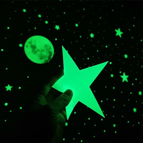 333 adesivi luminosi a stella e 1 adesivo lunare, adesivi da parete luminosi, adesivi a forma di stella e luna, adesivi extra luminosi, carta luminosa per cameretta dei bambini