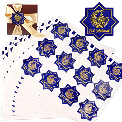 120 Pz Adesivi Eid Mubarak Adesivi Etichette Sigillo Scritte Oro Autoadesivi Luna Stella Chiudipacco Decorazioni Ramadan per Bomboniere Scatole Regalo Busta Sacchetti Diario Album Biglietti d'auguri