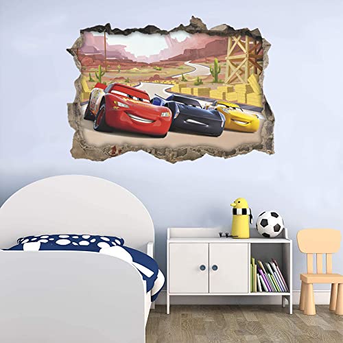 2 pcs Adesivi Murali Automobili Bambini, Adesivi da Parete Macchina da Corsa Decorazione, 3D Sticker Murale Rimovibile Fai-Da-Te, Per Cameretta Nursery Baby Wall Decor