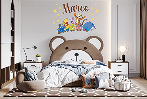 Adesivi murali per bambini - Nome Bambino/a + Personaggio Cartone Animato - Decorazione parete, adesivi per muro, stickers, personalizzato (Winnie The Pooh)