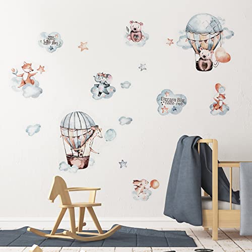 Adesivi Murali Bambini, Adesivi da Parete per Camera Bambini, Adesivi Sticker Animale Mongolfiera Aeroplano da Muro per Camera da Letto Bambini Asilo Nido Decorazione
