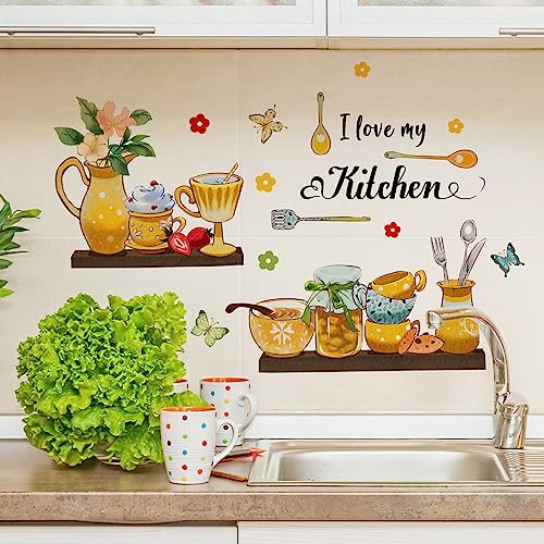 【Modello squisito】 Tazze, lattine e vasi sono ordinatamente posizionati sullo scaffale, le farfalle volano e il colore del miele ti fa sentire lo stile bohémien.