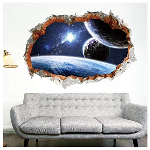 Adesivi murali decorativi pianeta spazio esterno Effetto 3D Decorazioni murali rotte Decalcomania di arte murale della galassia