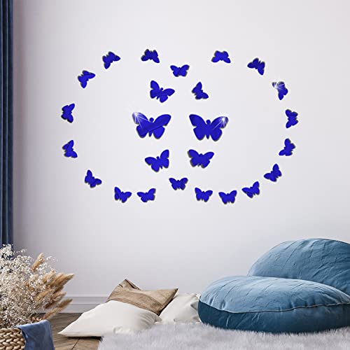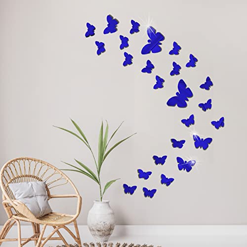 Adesivi Murali Farfalle 3D Specchio a Farfalla Adesivi Murali Tridimensionali Acrilico Rimovibile 25 Pezzi Fai dante Adesivi Murali Decorazione da Muro per Casa/Hotel/Salotto/Camera/Cucina(Blu)