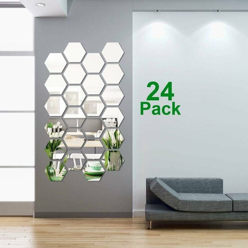 Materiale: questo adesivo da parete a specchio esagonale è realizzato in plastica, con una superficie riflettente e colla sul retro;