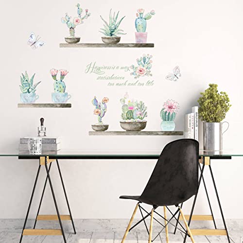 Adesivi Murali Verde Pianta in Adesivi da Parete Stickers Pianta in Vaso Adesivo Murale Pianta Cactus Verde Rimovibili Fai Da Te Decorazioni per Soggiorno Camera da Letto Corridoio Cucina 30*90 cm