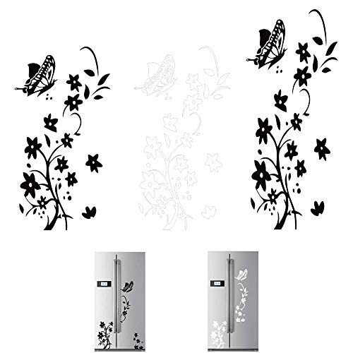 Adesivi da Parete, 3Pezzi Adesivo Frigorifero Farfalla Vite di Fiori Decorazione, Decalcomania Mobili Adesivi Murali Wall Stickers QSXX DIY per Parete Muro Fai da Te Wallpaper,Nero,Bianco 70x25cm