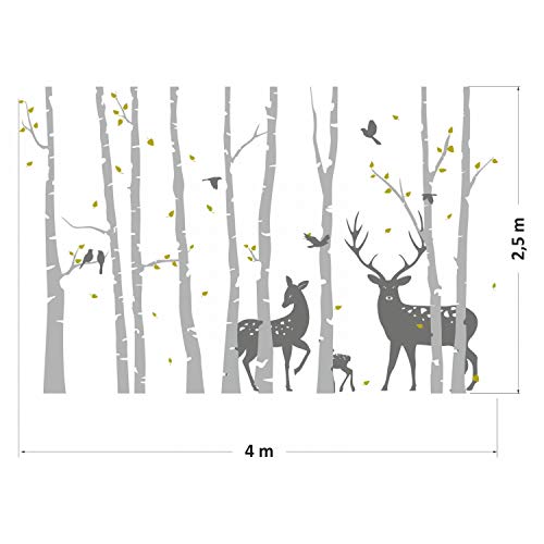 200 adesivi da parete con ceppi di betulla grigio con cervo, cervo e bacio - uccelli in betulla
