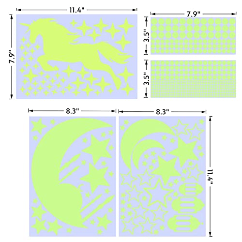 Adesivi da Parete Fluorescenti, Stickers da Muro Autoadesivi, Adesivo Murale Set con Luminosi Colori Arcobaleno Luna/Stelle/Unicorno/Fata, DIY Decorazione Murali Adesivo per Camerette Soffitto Bambini