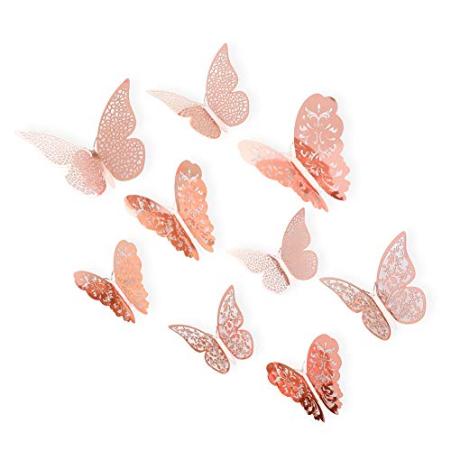 Adesivi da parete a forma di farfalla., Metallo, Oro rosa, 36 PCS
