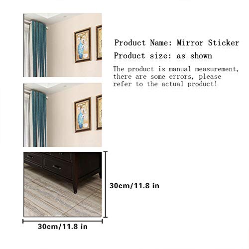 Confezione e dimensioni: viene fornito con 4 fogli di piastrelle a specchio acrilico, 30 x 30 cm. Ideale per la decorazione della casa fai da te e lascia che la tua casa sia più spaziosa.