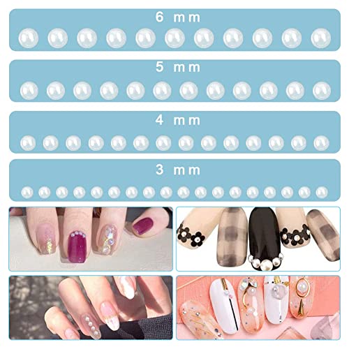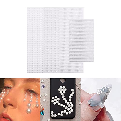 Adesivi di Perle, Perle Adesive per Capelli, Adesivi con perle Autoadesive, Perle Piatto Adesivo Bianche, Fai Da Te Adesivi per Manicure, Bellezza e Decorare Telefoni Cellulari-2800 Pcs