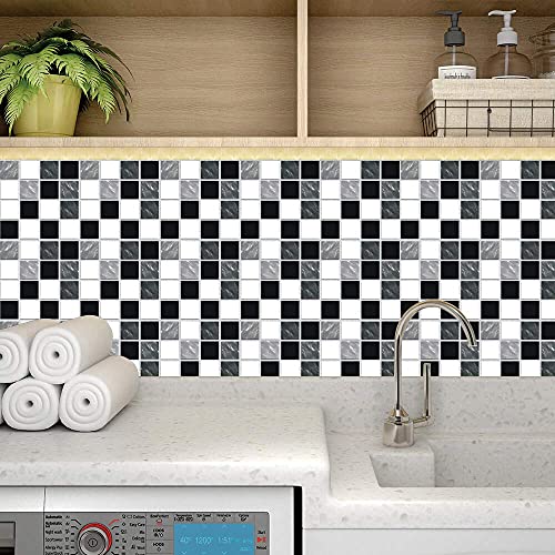 Adesivi per Piastrelle Bagno e Cucina Bianco e Nero, 24 Pezzi Impermeabile PVC Autoadesivo Decorazione Adesivo per Piastrelle per Cucina, Soggiorno, Bagno, Decorazioni per Casa, Autoadesivo (20*20cm)