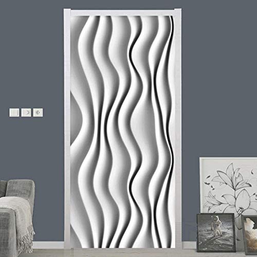 Adesivi Per Porta, Effetto 3D, Per Decorazione Di Porte, Ryutp Porta Murale Linea Ondulata Tridimensionale Autoadesivo Vinile Applique 3D Adesivo Di Porta Decorazione Da Parete Per Porta 77X200Cm