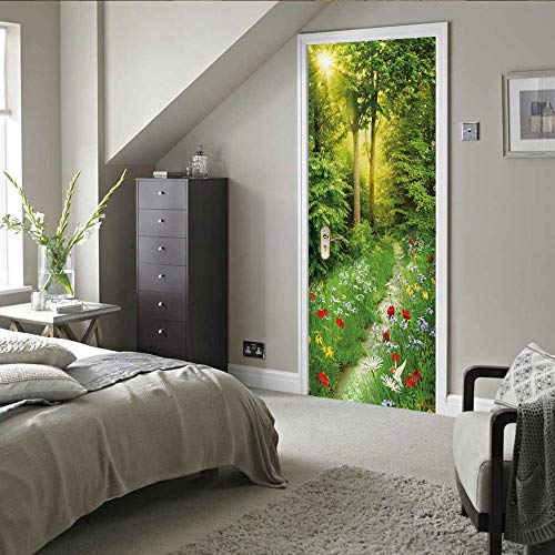 Adesivi per Porte 3D Interne Moderno Creativo Door Parati PVC Premium Door Cover Impermeabile Arredo Adesivi d'arte.Sentiero nel bosco di montagna90 x 200 cm