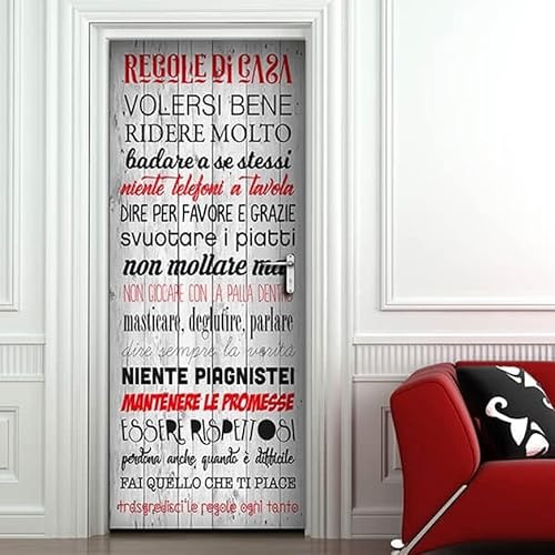 Adesivi per Porte in PVC Premium, Door Cover Regole della Casa, Applicazione Facile e Senza Bolle, Rivestimenti per Porte da Interno 83 x 210 Rifilabili