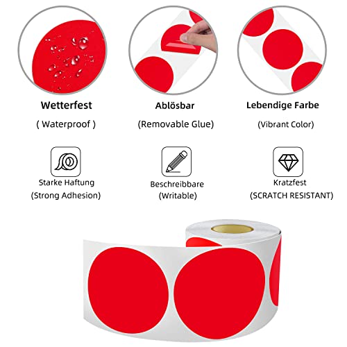 200 adesivi rotondi grandi 12,7 cm, autoadesivi, per codifica dei colori, resistenti alle intemperie, colore rosso