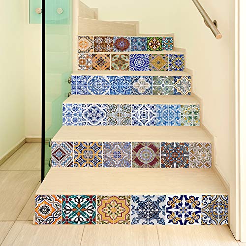Adesivi per scale per piastrelle vintage Decalcomanie per buccia Simulazione Adesivi per scale per piastrelle vintage per decorazioni,Adesivi per scale impermeabili,Adesivi per scale murale (Set di 6)