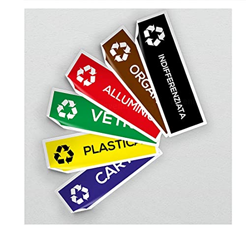 Dimensione 15 x 5 cm Differenzia la tua raccolta differenziata con adesivi di riciclaggio per la gestione dei rifiuti Etichette adesive per carta, plastica, vetro, rifiuti organici e altri rifiuti. Ideale per il bidone della spazzatura e per facilitare la raccolta differenziata. Autoadesivo molto facile da applicare.