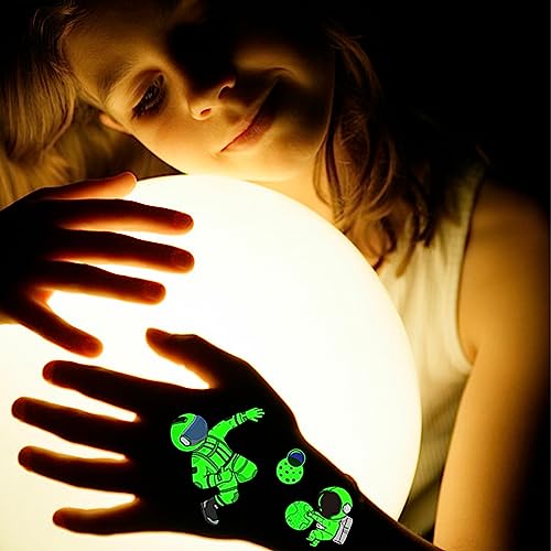 【Adesivi luminosi】 Gli adesivi per tatuaggi spaziali mostreranno un effetto luminoso verde in un ambiente buio oltre a mostrare i colori normali durante il giorno. Puoi irradiare la lampada UV o la luce solare per 30 secondi, assorbire la sorgente luminosa e si illuminerà al buio, attirando l'attenzione dei bambini e conquistando il loro favore.