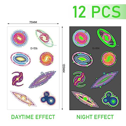 12 Adesivi Spazio Bagliore Nel Tatuaggio Scuro, Adesivi Tatuaggio Temporaneo per Bambini, Adesivi Astronauti Impermeabili, Possono Essere Utilizzati per Regali Di Compleanno, Feste a Tema