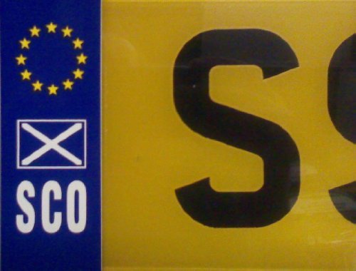 Adesivi Targa SCO con Bandiera Scozzese e Adesivi Bandiera UE 3.81 cm x 11.43 cm