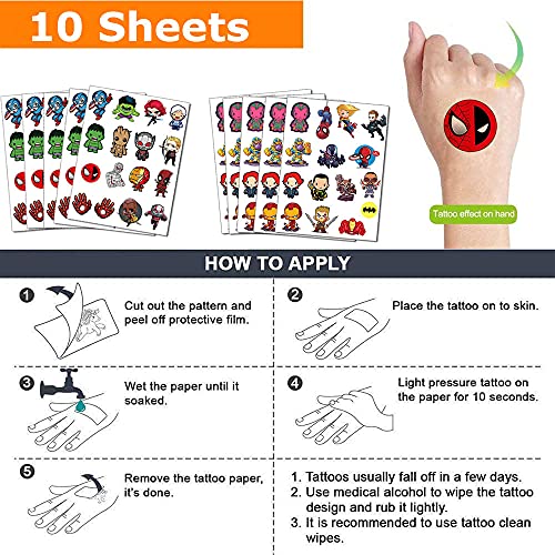 Adesivi per tatuaggi temporanei supereroi Bomboniere per feste di compleanno Regali Decorazioni Forniture per bambini (10 fogli)