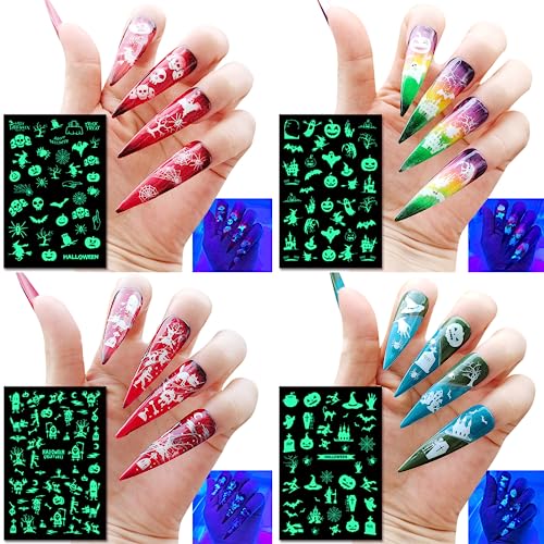 Adesivi per unghie 3D per Halloween, autoadesivi, a ragnatela luminosa, a forma di zucca, cranio, fantasma, strega, decorazione per unghie