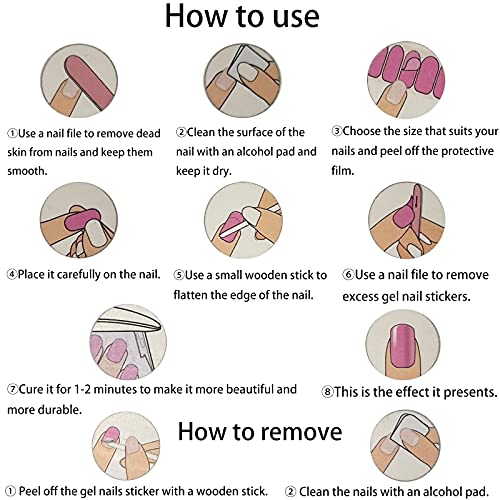 【Facile da usare】 Pulisci la superficie delle unghie e usa lo strumento per manicure per tagliare delicatamente i bordi per modellare le unghie e renderle belle. Quindi staccare l'adesivo e attaccarlo direttamente sull'unghia;