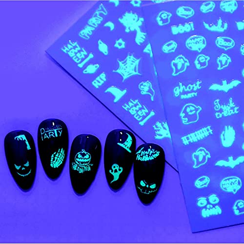 12 PCS Adesivi per unghie luminosi, 3D autoadesivi Adesivi per unghie Decalcomanie Glow in The Dark per Halloween Nail Art Decorazione fai da te HOINCO