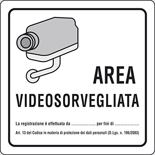 ADESIVO CM 12X12 "AREA VIDEOSORVEGLIATA. La registrazione è effettuata da... Per fini di... Art.13"