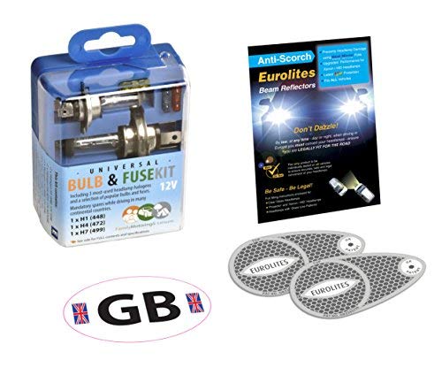 Adesivo GB + adesivi Eurolites per deviare la luce dei fanali + 10 lampadine di ricambio, kit H1, H4, H7
