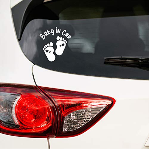 Adesivo per auto per bambini, autoadesivo, resistente alle intemperie, impermeabile, in vinile, colore: bianco lucido, impronte di piedi)