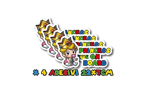 X4 Adesivo per Auto Bimba a Bordo a Tema Super Mario - Baby on Board Princess on Board con un Tocco di Giocosità e Stile - Acquista Ora per una Guida Divertente!