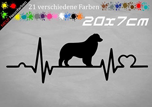 Adesivo con battito cardiaco, Australian, Shepherd, cane di Hüteteted, 20 x 7 cm, in 21 colori